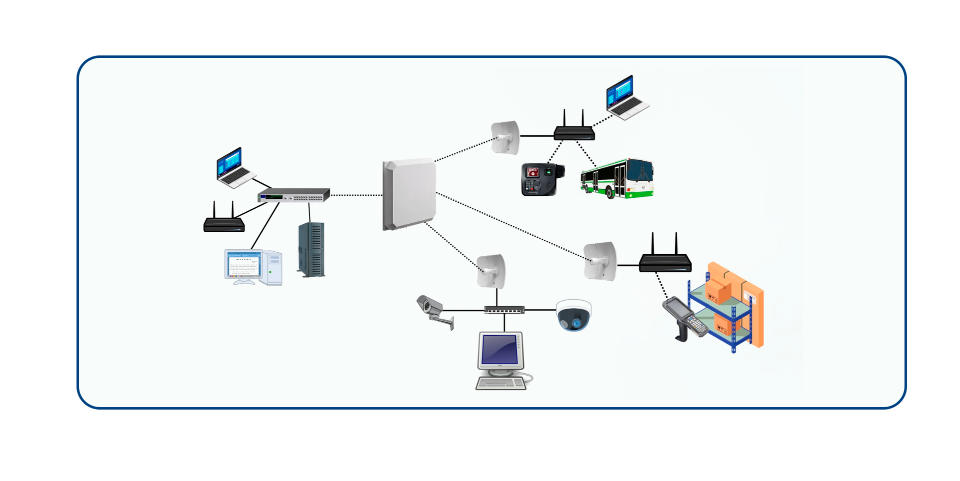 Para a conexão de dispositivos como estações de trabalho, coletores de dados, celulares, veículos e máquinas.